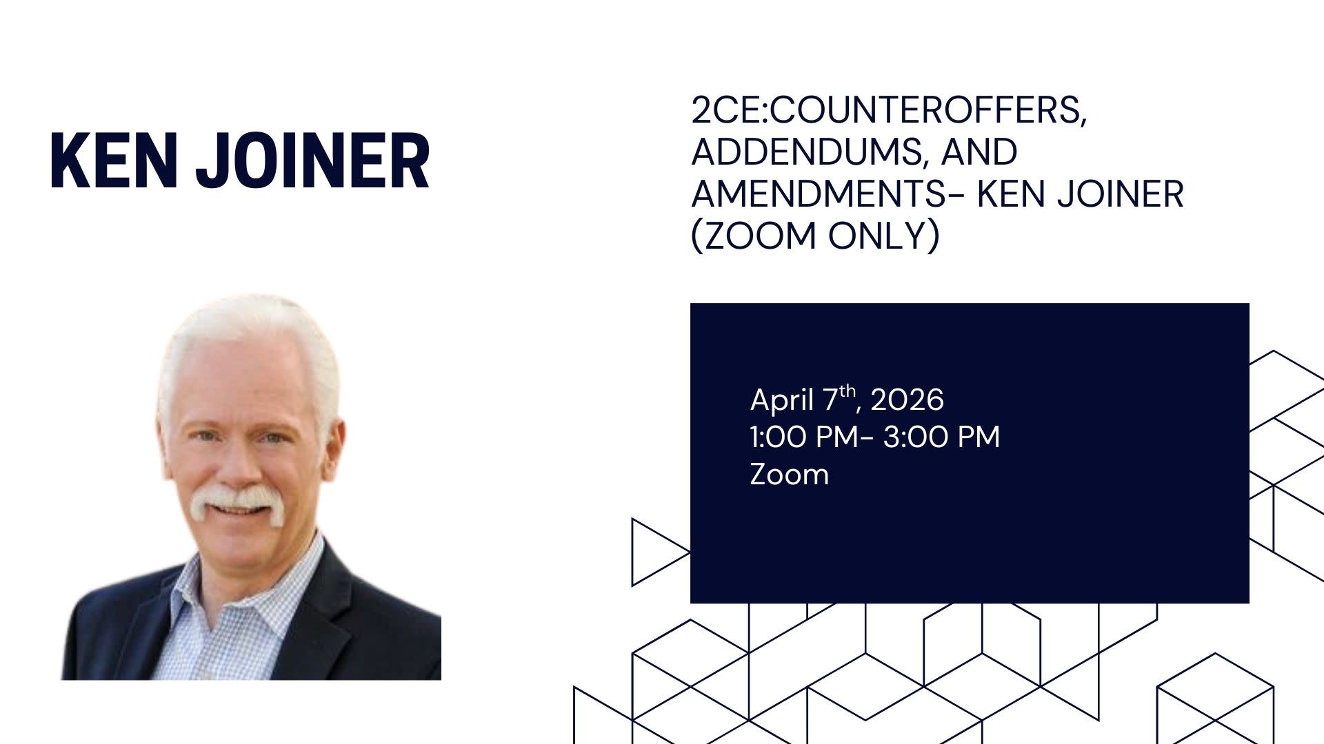 2CE- Counteroffers, Addendums, and Amendments- Ken Joiner (Zoom only)
